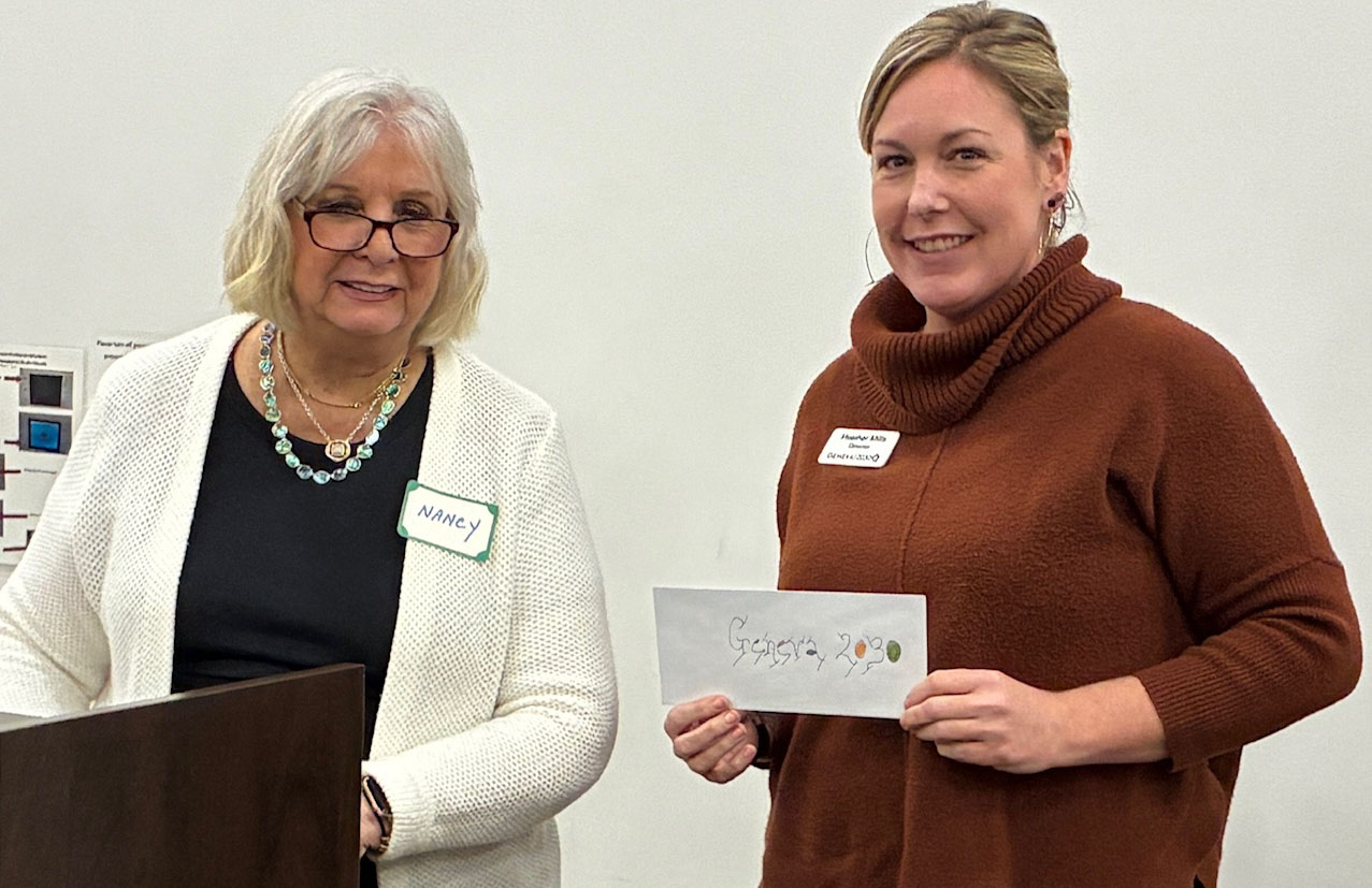 Dec. 8, 2025 – The Ontario/Yates Fund for Women and Girls presented a $5,000 check to Geneva 2030 Executive Director Heather Mills today. The fund supports programs that have a positive impact on the economic and social status of women and girls.